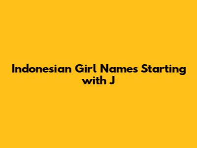 Modern Indonesian Girl Names Starting with 'J'