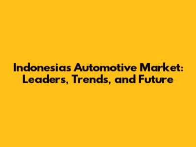 Indonesia's Automotive Market: Leaders, Trends, And Future