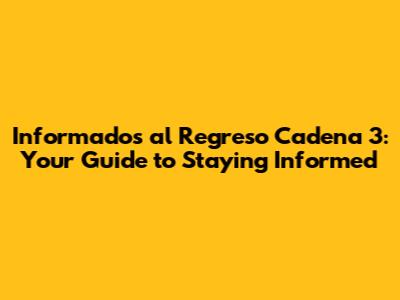 Informados Al Regreso Cadena 3: Your Guide To Staying Informed
