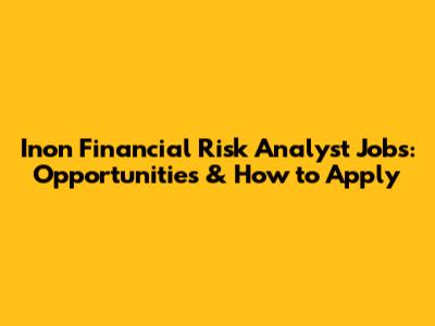 Inon Financial Risk Analyst Jobs: Opportunities & How To Apply