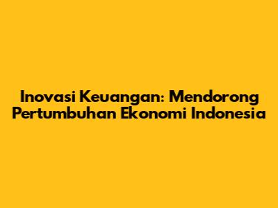 Inovasi Keuangan: Mendorong Pertumbuhan Ekonomi Indonesia