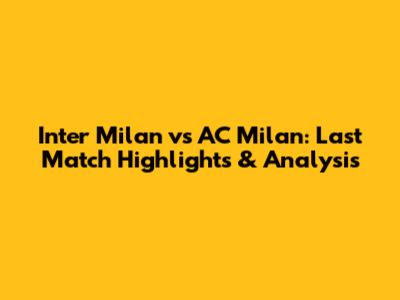 Inter Vs AC Milan: Last Match Highlights & Analysis
