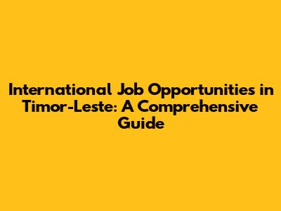 International Job Opportunities In Timor-Leste: A Comprehensive Guide