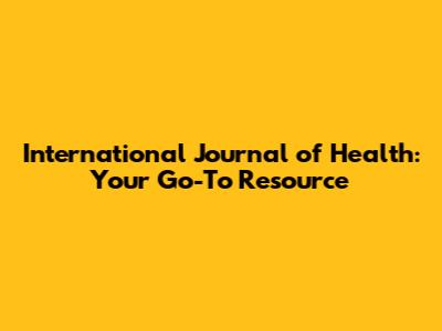 International Journal Of Health: Your Go-To Resource