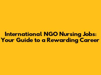 What are International NGO Nursing Jobs?
