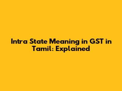 Intra State Meaning In GST In Tamil: Explained