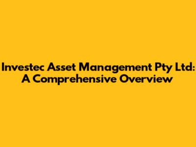 Let's dive into Investec Asset Management Pty Ltd, a major player in the financial world. We're going to explore what makes this company tick, its history, its services, and its impact on the investment landscape. Whether you're a seasoned investor or just starting, understanding firms like Investec is crucial.