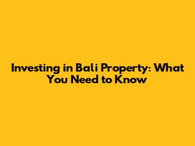 Investing In Bali Property: What You Need To Know