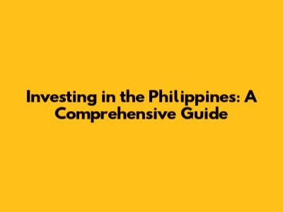 Investing In The Philippines: A Comprehensive Guide