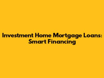 Investment Home Mortgage Loans: Smart Financing
