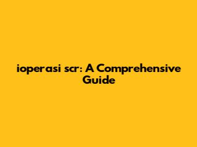 Ioperasi Scr: A Comprehensive Guide