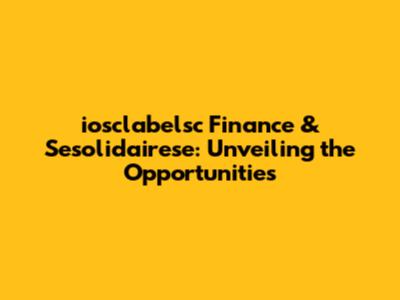 Iosclabelsc Finance & Sesolidairese: Unveiling The Opportunities