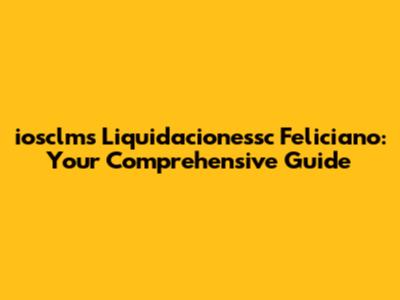 Iosclms Liquidacionessc Feliciano: Your Comprehensive Guide