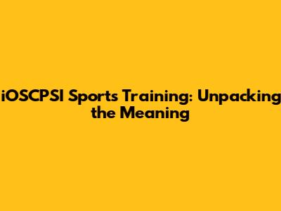 IOSCPSI Sports Training: What Does It Really Mean?