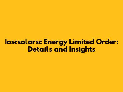 Ioscsolarsc Energy Limited Order: Details And Insights