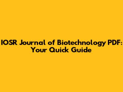 IOSR Journal Of Biotechnology PDF: Your Quick Guide