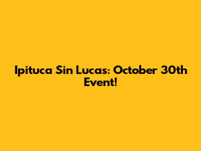 Hey guys! Ever heard of Ipituca Sin Lucas? Let's dive into what makes this event on October 30th so special. We're talking music, culture, and a whole lot of fun – all rolled into one amazing experience. Whether you're a seasoned event-goer or just looking for something new to check out, this is an event you won't want to miss. Get ready to mark your calendars and prepare for an unforgettable time!
