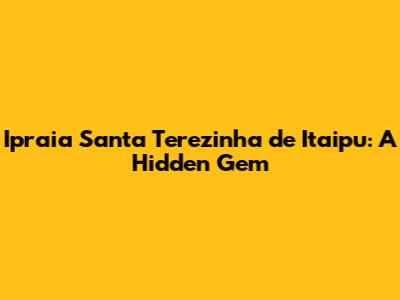 Hey guys! Ever heard of Ipraia Santa Terezinha de Itaipu? If not, you're in for a treat! This place is a real hidden gem, and I'm super excited to share everything about it with you. Whether you're a local looking for a new weekend spot or a traveler seeking off-the-beaten-path adventures, Ipraia has something special for everyone. Let's dive in and explore what makes this destination so unique and worth visiting.