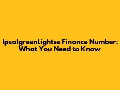 IpsaIgreenlightse Finance Number: What You Need To Know