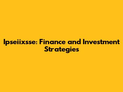 Ipseiixsse: Finance And Investment Strategies