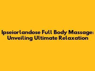 Ipseiorlandose Full Body Massage: Your Relaxation Destination