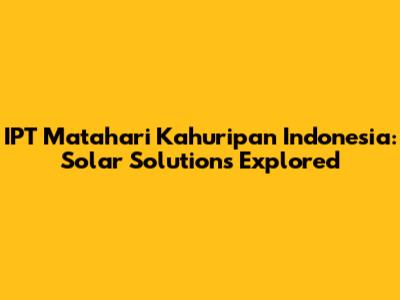 Are you curious about IPT Matahari Kahuripan Indonesia? Let's dive into what makes this company tick and explore its role in the renewable energy sector. This article provides an in-depth look, offering valuable insights for anyone interested in solar solutions.