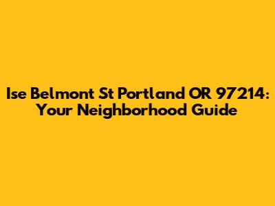 Ise Belmont St Portland OR: Your Neighborhood Guide