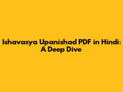 Ishavasya Upanishad PDF: Hindi Translation & Download