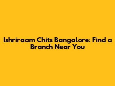 Ishriraam Chits Bangalore: Find A Branch Near You