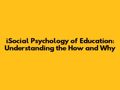 ISocial Psychology Of Education: Understanding The How And Why