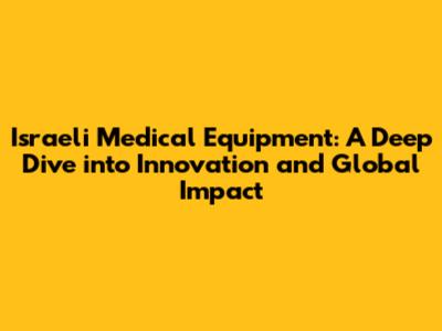 Israeli Medical Equipment: Innovation & Impact