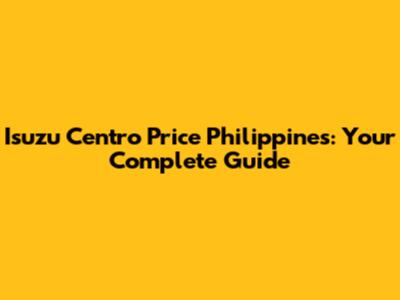Isuzu Centro Price Philippines: Your Complete Guide