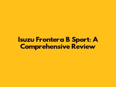 Isuzu Frontera B Sport: A Comprehensive Review