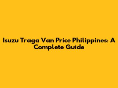Isuzu Traga Van Price Philippines: A Complete Guide