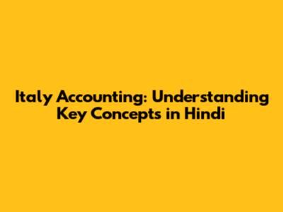 Italy Accounting: Understanding Key Concepts In Hindi