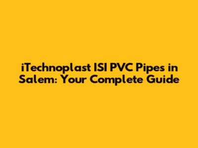 ITechnoplast ISI PVC Pipes In Salem: Your Complete Guide