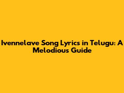 Ivennelave Song Lyrics In Telugu: A Melodious Guide