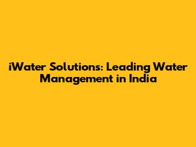 IWater Solutions: Leading Water Management In India