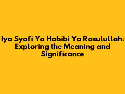 Iya Syafi Ya Habibi Ya Rasulullah: Meaning & Significance