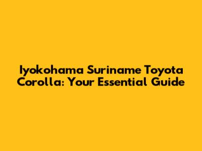 Iyokohama Suriname Toyota Corolla: Your Essential Guide