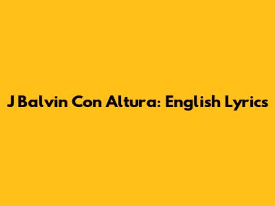 J Balvin Con Altura: English Lyrics