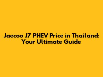 Jaecoo J7 PHEV Price In Thailand: Everything You Need To Know