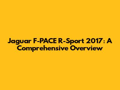 Jaguar F-PACE R-Sport 2017: A Comprehensive Overview