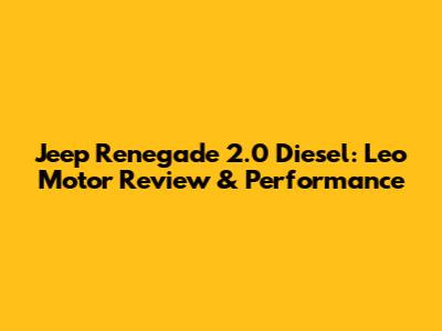 Jeep Renegade 2.0 Diesel: Leo Motor Review & Performance