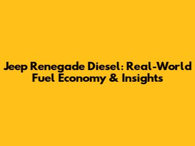 Jeep Renegade Diesel: Real-World Fuel Economy & Insights