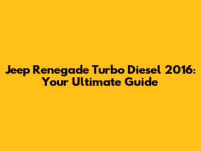 Unveiling the 2016 Jeep Renegade Turbo Diesel: A Detailed Overview