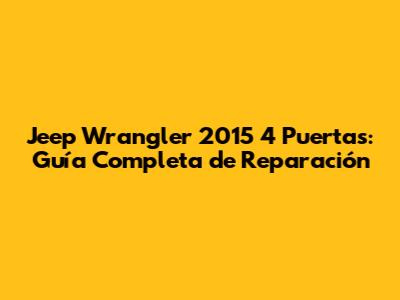 Jeep Wrangler 2015 4 Puertas: Guía Completa De Reparación