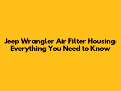 Jeep Wrangler Air Filter Housing: Everything You Need To Know