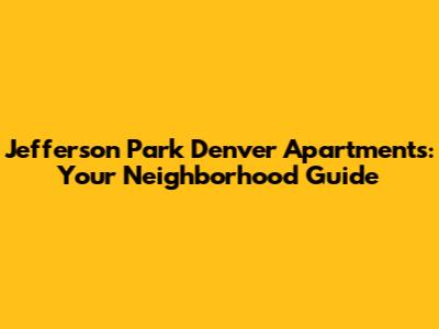 Jefferson Park Denver Apartments: Your Neighborhood Guide