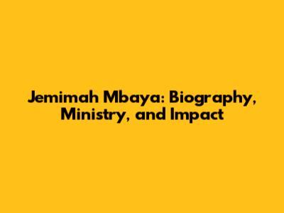 Jemimah Mbaya: Biography, Ministry, And Impact